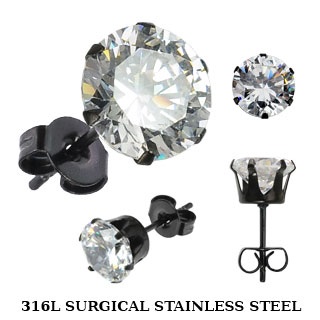 Серьги-гвоздики, цвет прозрачный, ножка черная, размер камня 9 мм
