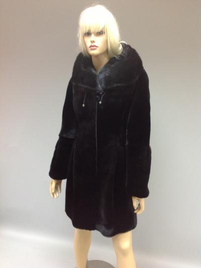 -мутон австралийский, капюшон обработан норкой, защипы на талии и манжетах, борта из кожи итальянской