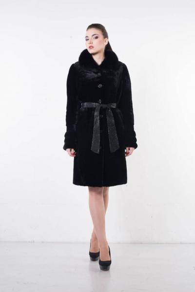 мутон австралийский, воротник норка, борта и пояс из кожи итальянской