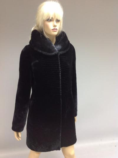 мутон австралийский, капюшон обработан норкой, борта из кожи итальянской.