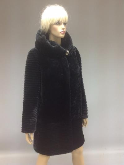 мутон австралийский, юбка, рукава, капюшон из стрижки, низ юбки и рукава на кулисках.