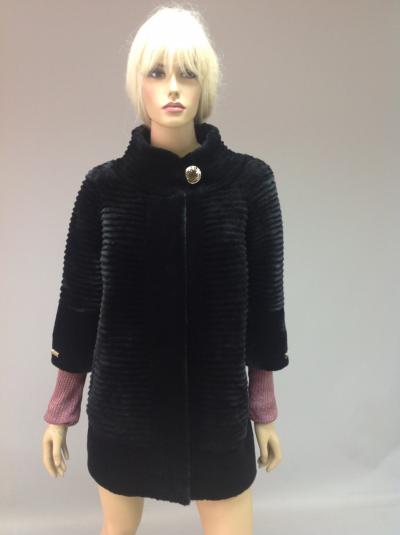 австралийский мутон, рукав 3/4, борта и пояс из кожи итальянской