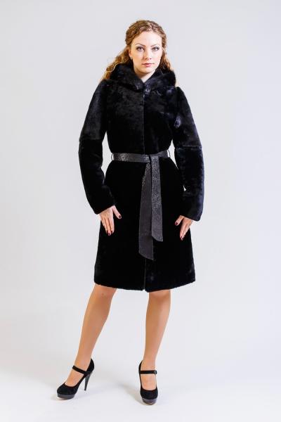 -мутон австралийский, капюшон полностью из цельной норки, верхняя часть рукавов из цельной норки, борта и пояс кожа (итальянская)